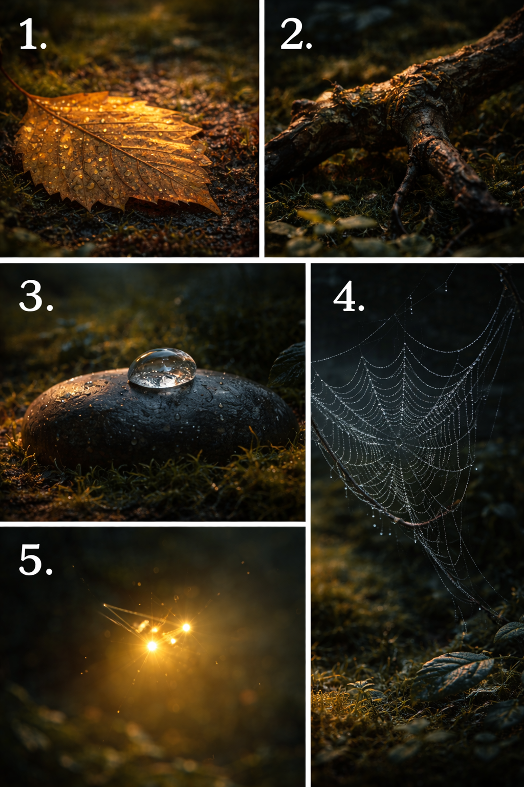 Imaginează-ți că te afli într-un colț liniștit, în lumina caldă a apusului. În fața ta sunt cinci obiecte. Nu te gândi mult, simte pur și simplu și alege. Care simți că te atrage?